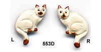 Cat Button. Cat is sitting with its tail pointing down. Measures 1/2 in. x 5/8 in. Comes facing left or right. Five colors.